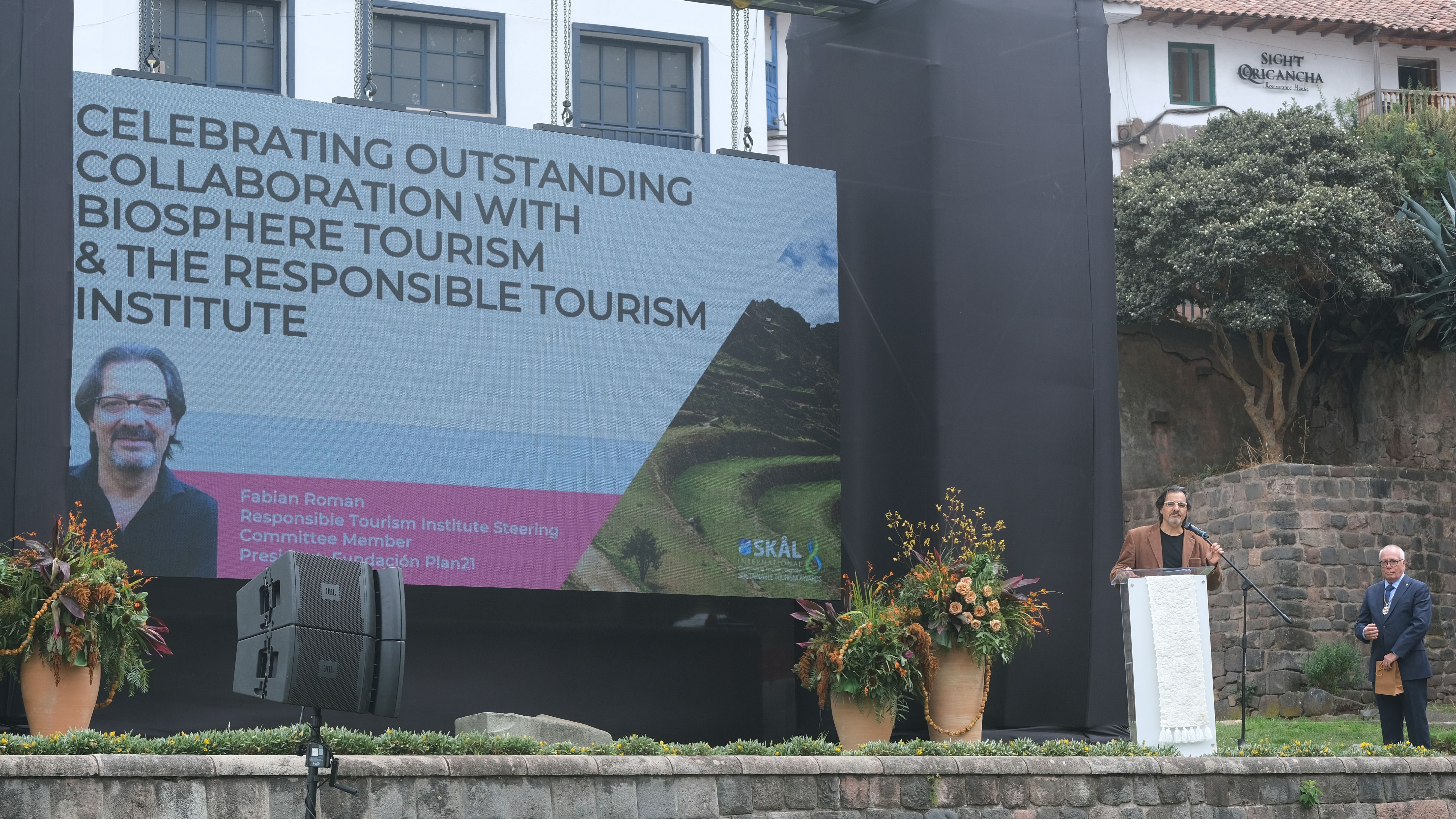 The ceremony featured remarks by Fabian Román, member of the Responsible Tourism Institute (RTI) Board of Directors, who emphasized the positive impact that Biosphere Tourism and the Responsible Tourism Institute (RTI) are generating in Latin America, promoting sustainability models aligned with the Sustainable Development Goals (SDGs).